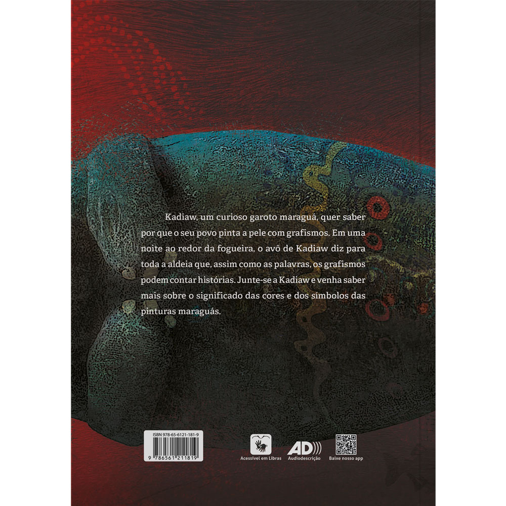 O pequeno Kadiaw tem muitas perguntas sobre o significado dos grafismos que seu povo costuma pintar na pele com urukú e jenipapo. Divertindo-se com a curiosidade do neto, o velho Tulakaw compartilha sua sabedoria com o garoto, recontando a origem e os segredos dos grafismos maraguás, ilustrados neste livro por Elias Yaguakãg e Maurício Negro.