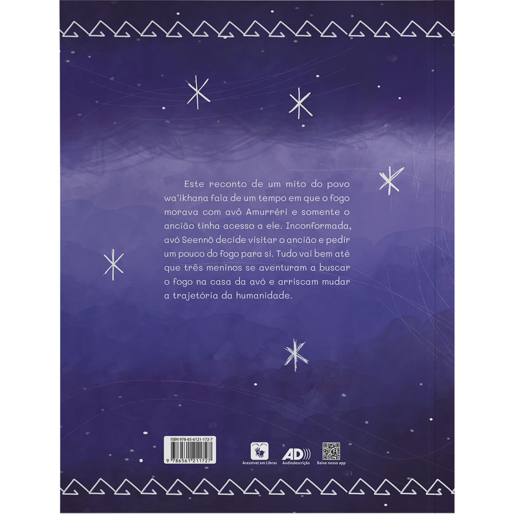 Há muitos e muitos anos, o fogo morava com Avô Amurréri, ancião que viera de outra parte do Universo. Ninguém além dele tinha acesso ao fogo. Até que, após enfrentar muitas dificuldades por não ter como se aquecer e aquecer os alimentos, Avó Seennõ decide visitar a casa do Avô e pedir um pouco do fogo para si. Porém, o aparecimento de três meninos, que dizem ser netos da velha senhora, pode mudar a trajetória de toda a humanidade. Venha conhecer essa história sobre o mito de origem do fogo de acordo com as narrativas orais dos Wa’ikhana.