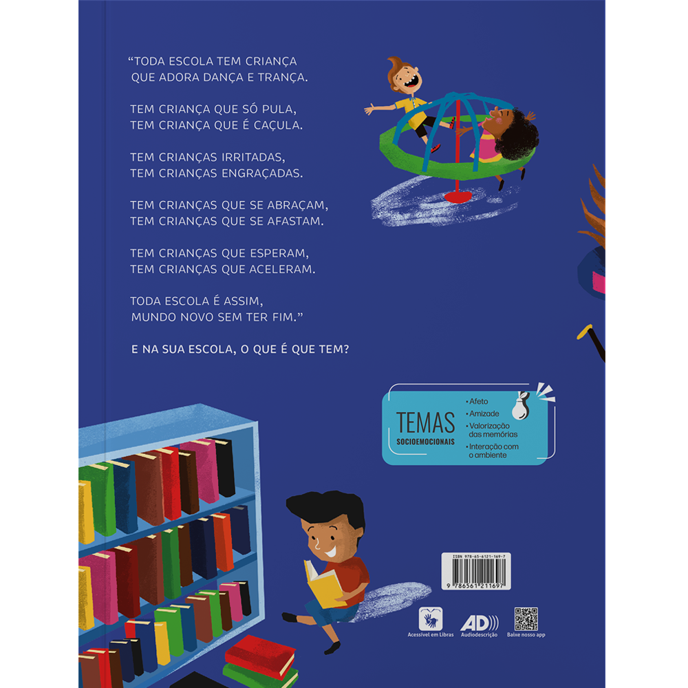 É na escola que a criança estabelece o primeiro contato com o mundo fora da família. Ali, ela conhece outras visões de mundo, estabelece novos laços afetivos, transforma e expande a sua realidade. Nos poemas deste livro, César Obeid exalta tudo o que a escola tem: livros e brinquedos, carinho e gritaria, brigas e discussões; criança levada, professora engraçada e muita imaginação. Uma imersão afetiva e divertida no universo escolar que certamente encantará e inspirará os pequenos leitores.