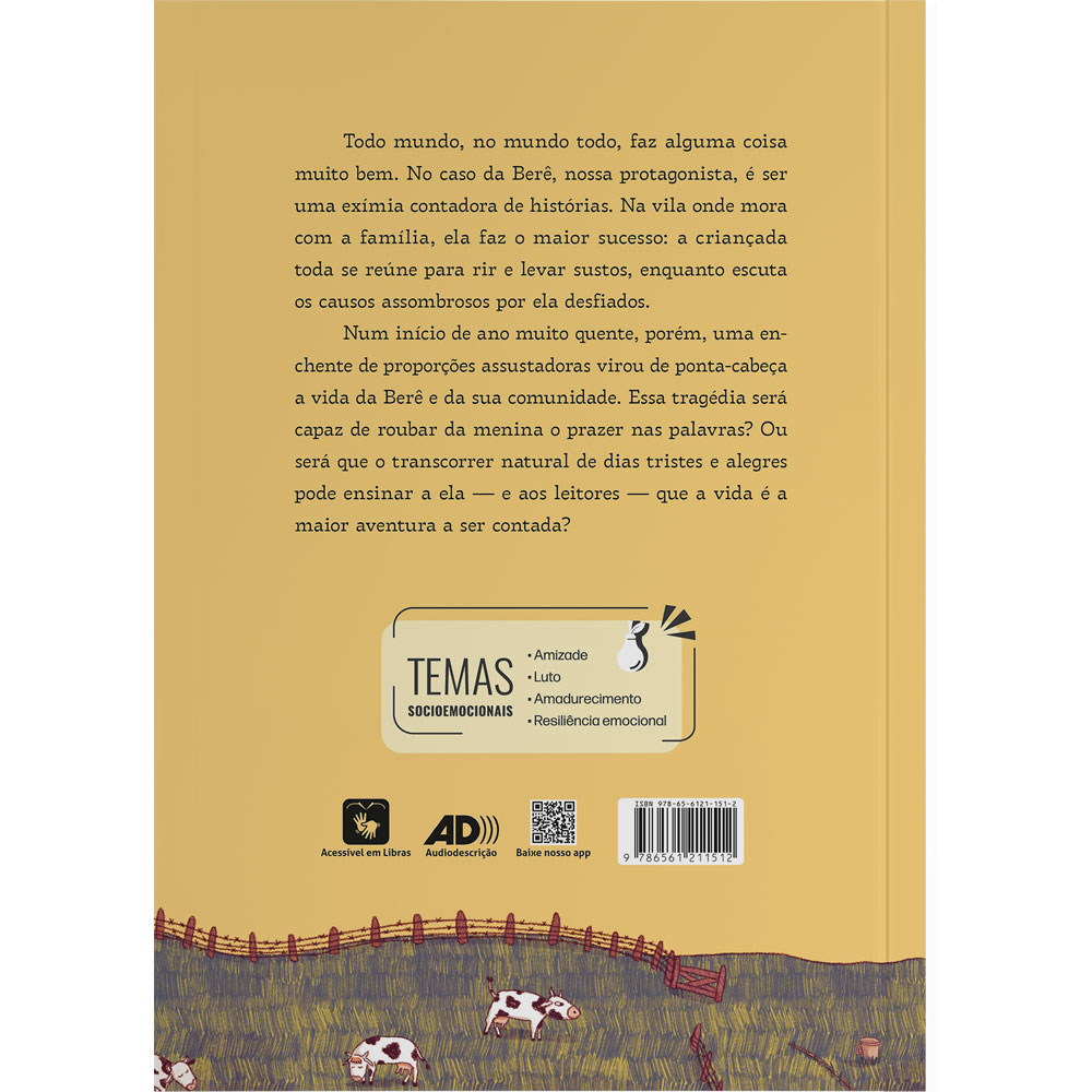 Todo mundo, no mundo todo, faz alguma coisa muito bem. A Berê, nossa protagonista, é uma exímia contadora de histórias. Na vila onde mora com a família, ela faz o maior sucesso: a criançada toda se reúne para rir e levar sustos enquanto escuta os causos assombrosos por ela desfiados. Mas será que uma tragédia pode roubar da menina o prazer nas palavras? Ou será que o transcorrer natural de dias tristes e alegres pode ensinar a ela — e aos leitores — que a vida é a maior aventura a ser contada?
